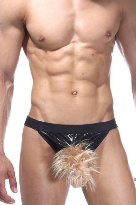 Игровые трусы-стринги для мужчин с низкой посадкой. Трусы на широкой резинке, хорошо тянутся. На трусах пушистый зверек-крот.