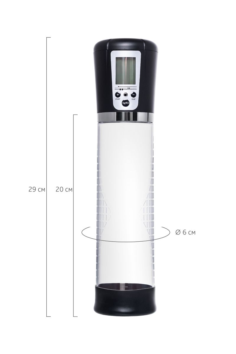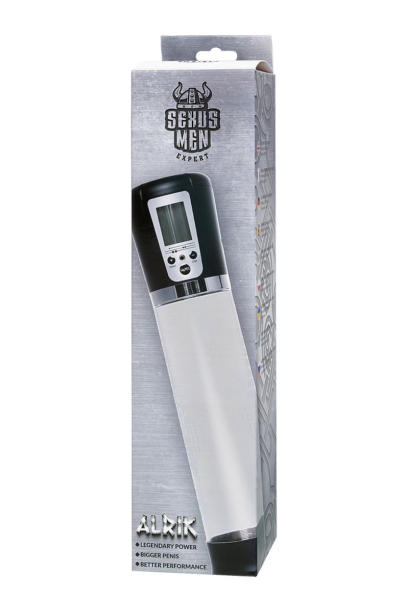 Автоматическая помпа на аккумуляторе Alrik от Sexus Men – для самых требовательных мужчин, которые стремятся к легендарной мужской силе. Сексуальное могущество для мужчины – не только крепкая и надежная эрекция, но и внушительный размер орудия. С автоматической помпой Alrik серии Sexus Men Expert возможно достичь впечатляющих результатов в области увеличения размеров пениса, занимаясь пенбилдингом по эффективной программе тренировок. Для тренировки, а также чтобы подготовить себя к длительному и яркому сексу, вставьте свой пенис в колбу и откачайте воздух. С помпой Alrik не нужно прилагать усилий для создания вакуума, она сделает это за вас комфортно и безопасно. Помпа имеет 4 уровня давления, которые регулируются кнопками +/ - на колбе, сброс давления – кнопкой Valves. На LCD экране помпы Alrik можно видеть время помпирования, давление и уровень, на котором в данный момент работает умное устройство. После сброса давления помпа сама откачает воздух до заданного режима. Благодаря отрицательному давлению увеличивается приток крови к половому члену. Прозрачный ABS-пластик позволяет наблюдать как пенис набирает силу и увеличивается в размере. А измерительная шкала помогает отслеживать результаты прямо в процессе. Для достижения ощутимых результатов рекомендуются систематические занятия по программе эффективного тренинга, которая входит в комплект. Регулярное использование вакуумной помпы Alrik от Sexus Men позволяет: последовательно увеличить длину и диаметр полового члена, делая его более внушительным и прокаченным сделать эрекцию более стабильной, крепкой и продолжительной повысить сексуальную выносливость и половое влечение поднять уверенность в своих возможностях и совершать новые сексуальные подвиги понизить вероятность образований аномальных фиброзных тканей. Помпа Alrik комплектуется программой тренировок и USB-проводом для зарядки. Порядок работы помпы: Включение: коротким нажатием на кнопку «+» помпа включается на нулевом уровне, загорается LCD экран. Повышение уровней: коротким нажатием на кнопку «+» последовательно повышайте уровни откачки воздуха. На экране в режиме реального времени отображается давление в колбе в Mbar. Помпа останавливается на заданном уровне и поддерживает указанный индикатором уровень давления. Если вы сбросите давление кнопкой «VALVES», помпа автоматически откачает воздух до заданного уровня. Понижение уровней: сбросьте давление кнопкой «VALVES», а затем коротким нажатием на кнопку «-» последовательно понижайте уровни давления в помпе. На экране в режиме реального времени отображается давление в колбе в Mbar. Помпа останавливается на заданном уровне и поддерживает указанный индикатором уровень давления. Сброс давления: кнопкой «VALVES» помпа сбрасывает давление в колбе. Если вы не понизили уровень, то помпа автоматически восстановит его до указанного красным индикатором. Выключение: последовательно понижайте уровни кнопкой «-» следующее нажатие после уровня 0 Kpa выключит помпу. Перед тем, как извлечь член из помпы, сбросьте давление кнопкой «VALVES». LCD экран показывает уровень заряда аккумулятора, режим давления, текущее давление в Mbar, время тренировки. Длина колбы - 20 см.