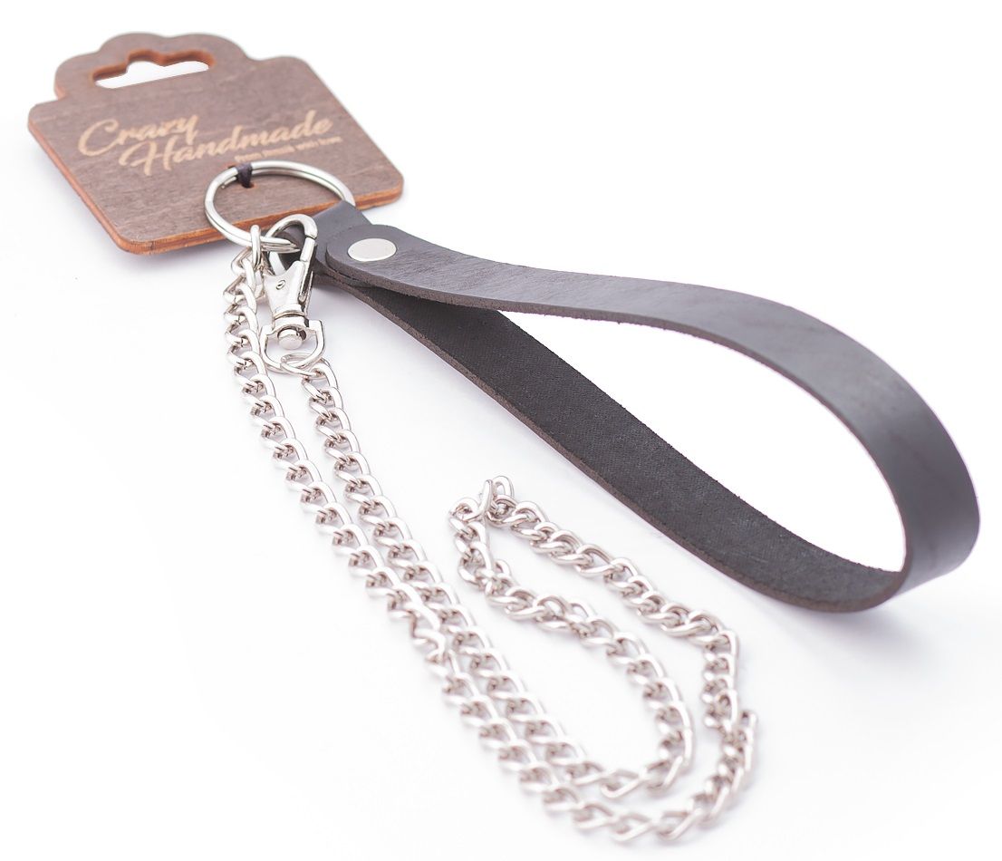 Металлический поводок с кожаной ручкой.